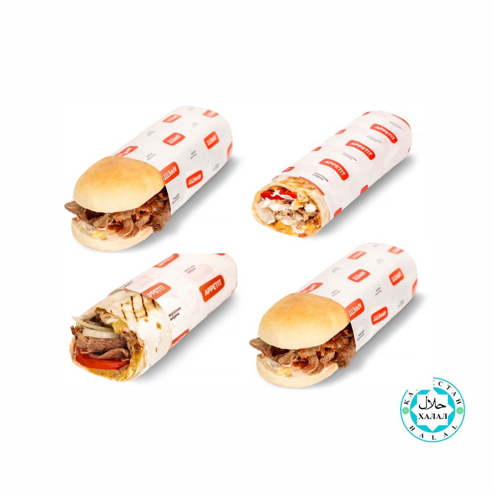 В комбо: классическая мини шаурма, куриная мини шаурма, донер классический, донер куриный.